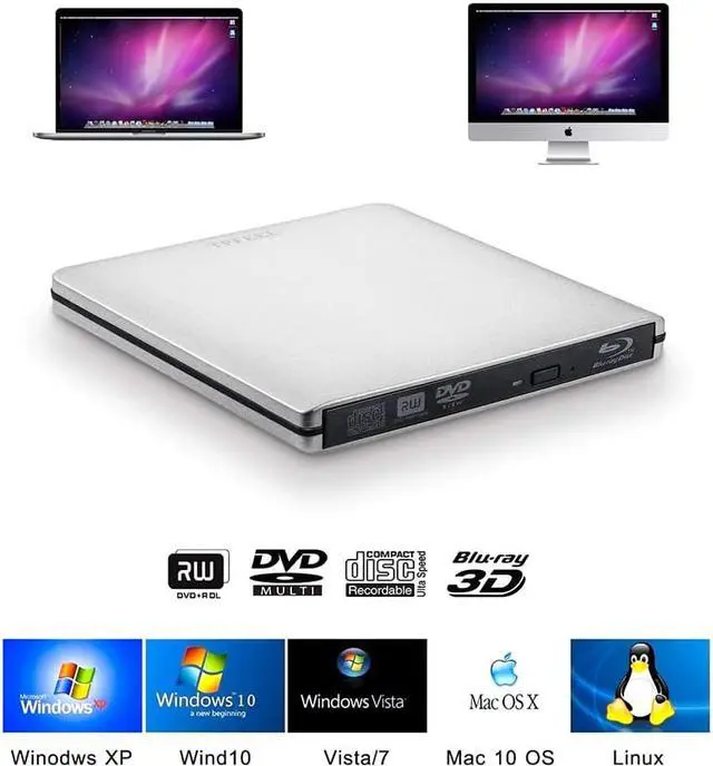 The Aluminum Portable External Blu-ray Drive is designed to help you quickly read and burner CDs, DVDs and Bluray Discs(BD).