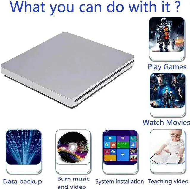 With AUBEAMTO portable external cd dvd drive, burner, writer, you can enjoy movies, music, burn discs and more. 100% brand new high-quality DVD drive has table working performance and long service life