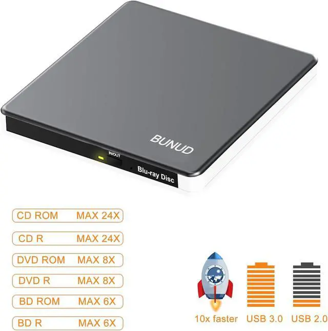 USB 3.0 & USB-CThe external CD/DVD drive for laptop features USB 3.0/Type-C high-speed interface for faster data transfer. External CD DVD drive is suitable for laptops desktops, computers and PCs with USB-C/Type-C interface. No need to install a driving program, just plug and play. The external CD drive will be recognized automatically within seconds