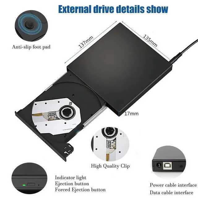 4. Please remember not to place the unit near strong magnetic objects,and keep the external cd drive flat to ensure the normal use of the machine.