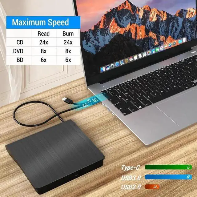 Our Blu-ray DVD writer features an advanced high-speed 3.0 interface, reaching a maximum speed of 5Gbps.