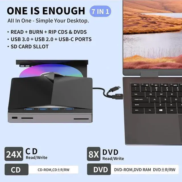 ![Alt view image 7 of 7 - Vszerda External CD DVD Drive for Laptop [7 in 1], Portable DVD Player for Laptop, USB 3.0 Type C External CD Burner +/-RW CD ROM DVD Drive, CD Reader Compatible with Windows 11/10/8/7 Linux, Mac OS](https://c1.neweggimages.com/productimage/nb640/B4D1D26020807A1XE2D.jpg)