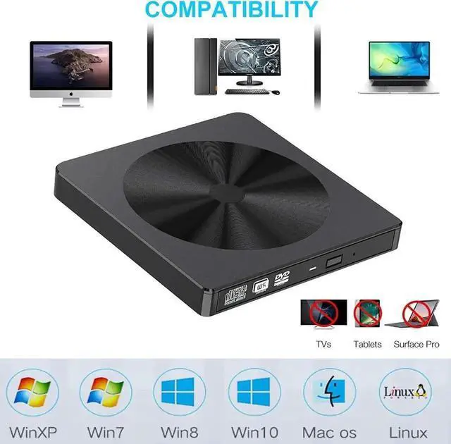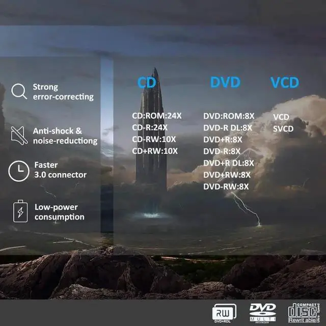 Embedded cable design, made with premium wire drawing material of shockproof, low noise, anti-interference and high durability.Non-Slip Rubber Pad. No Slipping and Dropping, Run more stable and Quiet.This drive is also compact and light weight. Portable for travel, you can put this External CD Drive/ DVD Writer/ Player in the traveling bag and carry around wherever you go.