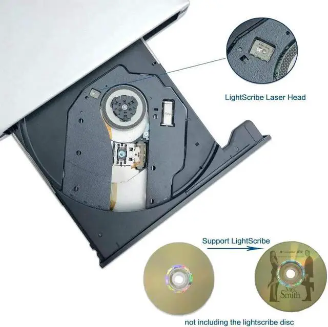 The External Slim Aluminum DVD+/-RW Writer with Lightscribe is designed to help you quickly read and burner CDs and DVDs.