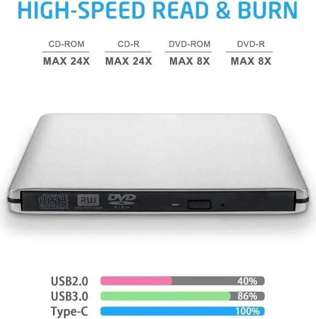 Its plug and play design works with any USB or USB-C port, and there is no software to install or learn to use.(Software required burner discs)