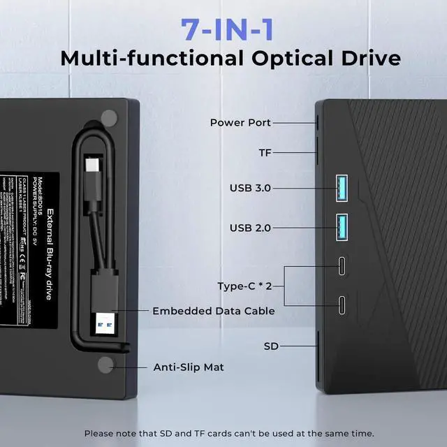 1.Our external CD drive combines reading and burning in one, and can also be used as a 7-in-1 adapter.