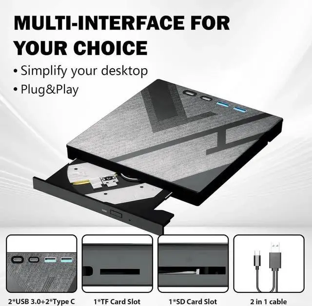 ![Alt view image 4 of 7 - [7 in 1] External DVD Drive, External CD/DVD Drive for Laptop with USB A & USB C Ports and SD/TF Port, CD DVD Burner DVD Player USB 3.0/Type C, CD ROM External Drive for PC Laptop Windows Linux](https://c1.neweggimages.com/productimage/nb640/B4D1D2602100RJS3K56.jpg)