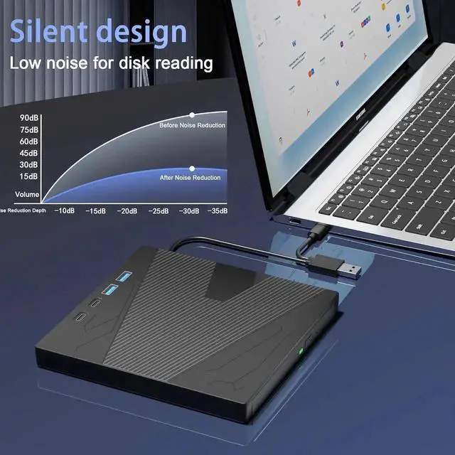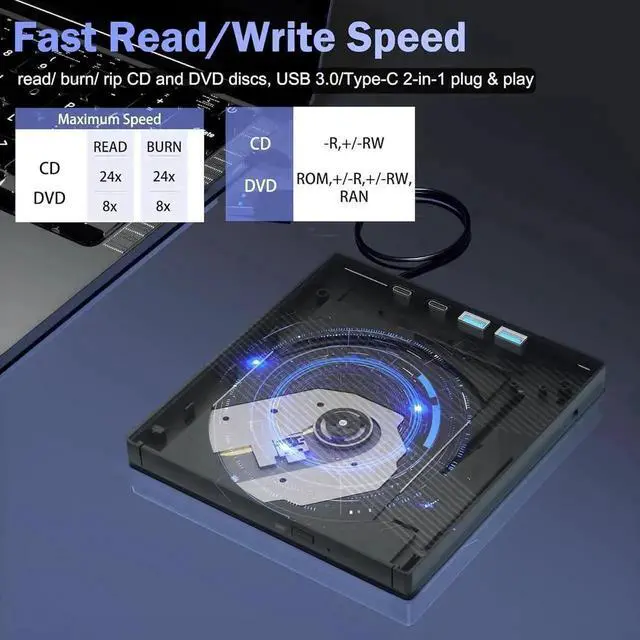 Our external cd/dvd drive is plug-and-play and easily connects to any computer with Type-C or USB 3.0 ports, perfect for business trips and traveling. No need to use additional software.