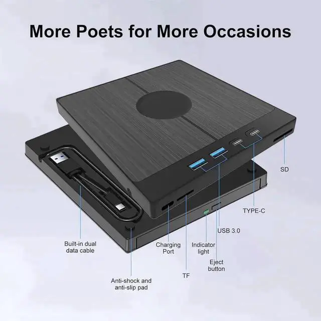 ![Alt view image 6 of 7 - Vszerda [7-in-1] External CD DVD Drive with 4 USB Ports & SD/TF Slot,Type-C USB 3.0 Portable Drive Reader DVD CD RW Writer Burner Player Optical Drive for Desktop PC Windows 11/10/8/7/XP,Mac OS, Linux](https://c1.neweggimages.com/productimage/nb640/B4D1D26021103RU03DC.jpg)