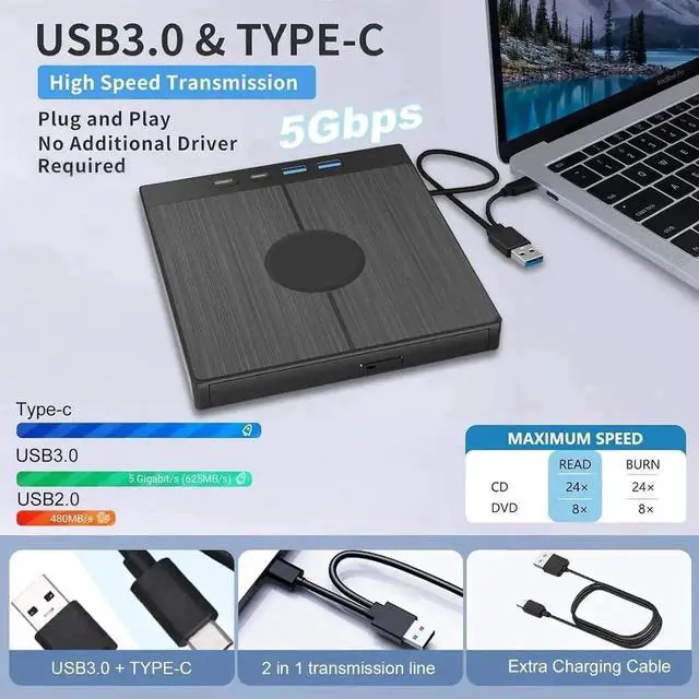 Type-C High Speed Interface: This slim DVD