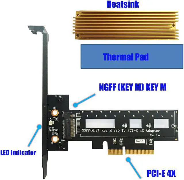 Introduction: 1. Allows user to use standard PCIE bus M. 2 SSD to PCIe x4 in the desktop or Laptop. 2. Transparent to the operating system and does not require any software drivers.