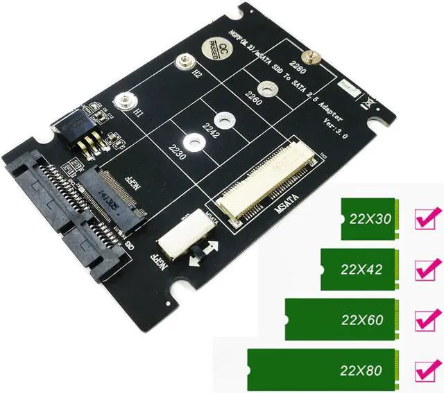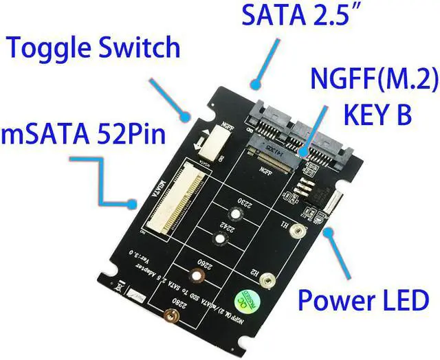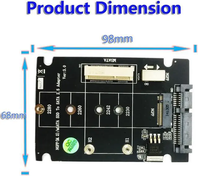 Specification 1. Support half size 26.8 mm and full size 50.95 mm mSATA SSD 2. Support NGFF M. 2 Key B SATA SSD 3. Support 4 sizes NGFF M.
