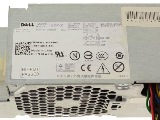 - General InformationManufacturer: Dell TechnologiesManufacturer Part Number: PW116Manufacturer Website Address: http://www.delltechnologies.comBrand Name: DellProduct Name: ATX12V Power SupplyProduct Type: Power SupplyTechnical InformationNumber of Fans: 1Power DescriptionOutput Power: 235 WMiscellaneousCompatibility: GX760 Small Form FactorOptiPlex:580760780 Desktop960980
