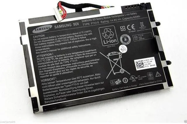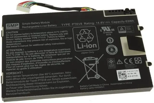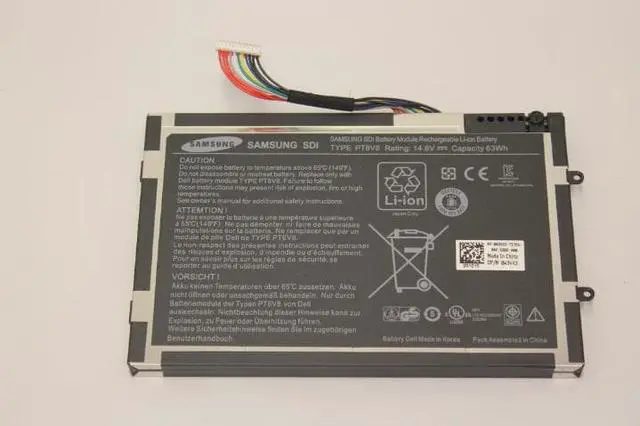 Description: New Dell laptop replacement battery. 14.8V, 63Wh, 4160mAh. This battery was pulled from a new laptop.