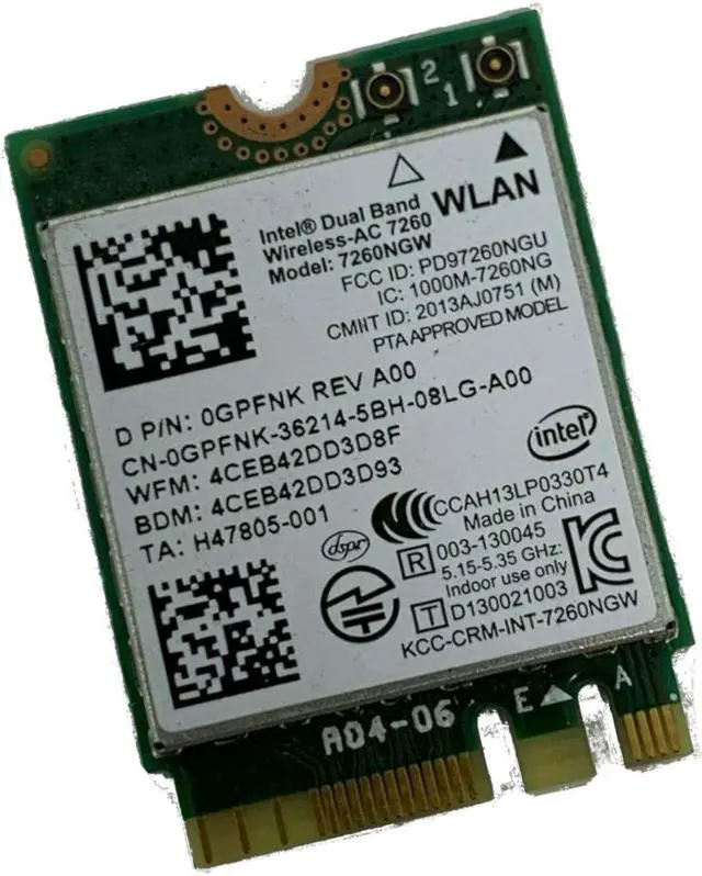 • GPFNK Dell Intel 7260 Wifi Bluetooth 4.0 Wireless Card