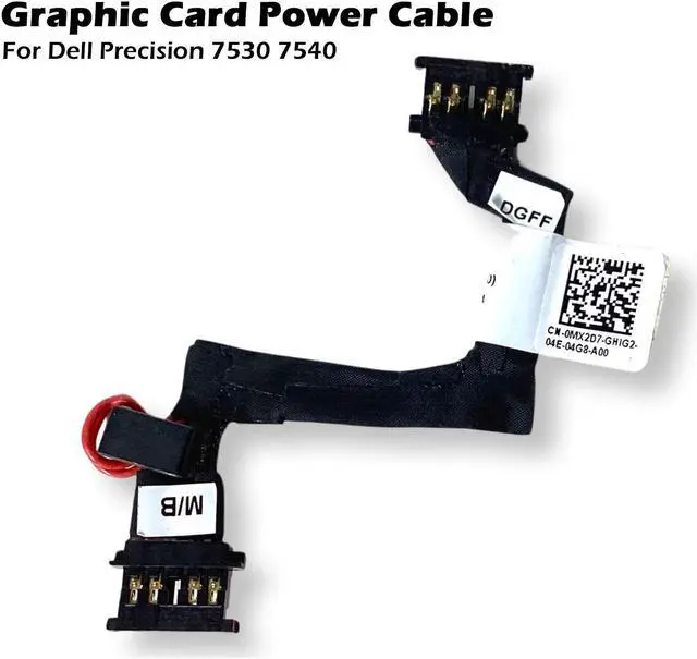 Dell Precision 7530 7540 DGFF Graphics Card Power Cable Only MX2D7" is a specialized power cable designed for the Dell Precision 7530 and 7540 mobile workstations. This cable is used to provide power to the DGFF (Dell Graphics Form Factor) graphics card within these laptops. The part number MX2D7 ensures compatibility with the specified models, making it an essential component for users needing to replace a faulty power cable or when installing a new DGFF graphics card, ensuring stable and reliable power delivery to the GPU.
