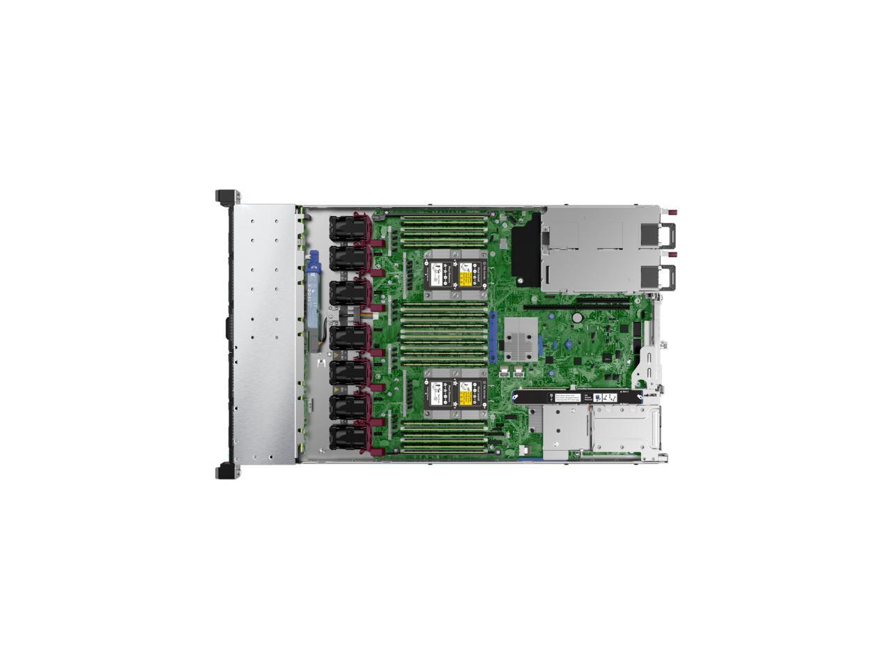 HPE ProLiant DL360 Gen10 rack server with one Intel® Xeon® 4208 processor, 16 GB memory, P408i-a storage controller, 1Gb 4-port 366FLR Adapter, 8 small form factor drive bays and one 500W power supply