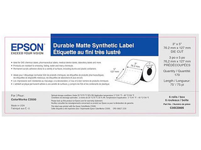 EPSON MEDIA FOR C3500 3X5 DIE CUT MATTE SYNTH LBL PK OF 6 170 LABLESROLL SOLD BY CASE
