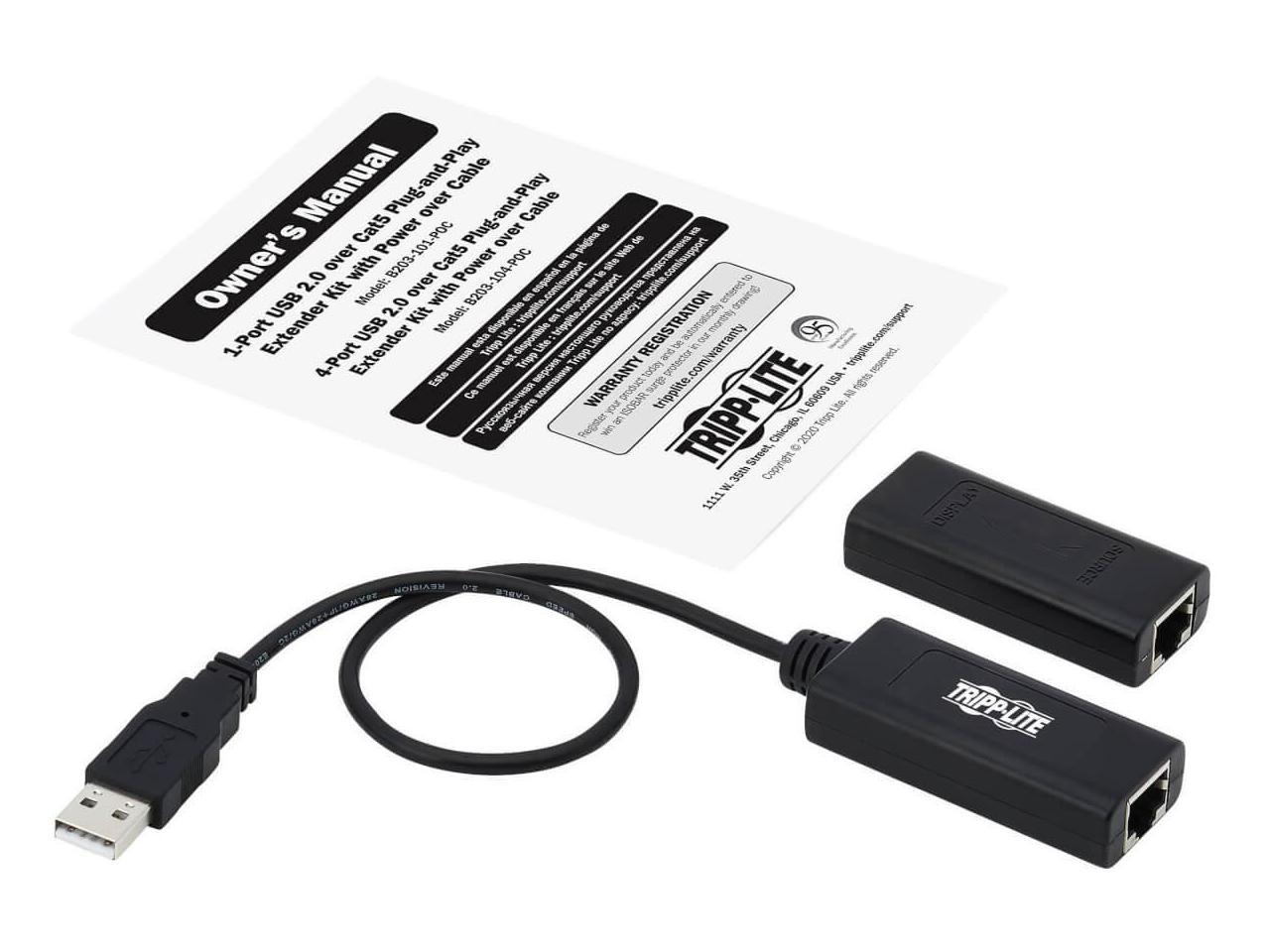 Tripp Lite USB Over Cat5/Cat6 Extender Kit 1-Port with PoC USB 2.0 164 ft. (B203