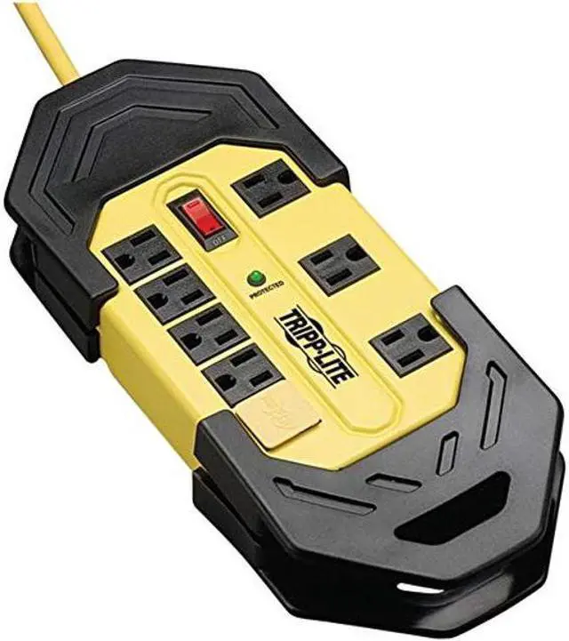 The Protected LED confirms that connected equipment is being protected. 4 safety covers shield unused outlets from debris and accidental contact. A rugged metal case stands up to the harshest environments. Built-in cord wrap with hang holes provides convenient cord management while integrated keyhole slots on bottom panel provide convenient wall/desk mounting. As an added safety feature, the surge suppressor's bright yellow color alerts you and others that power cords and tools are in use!
