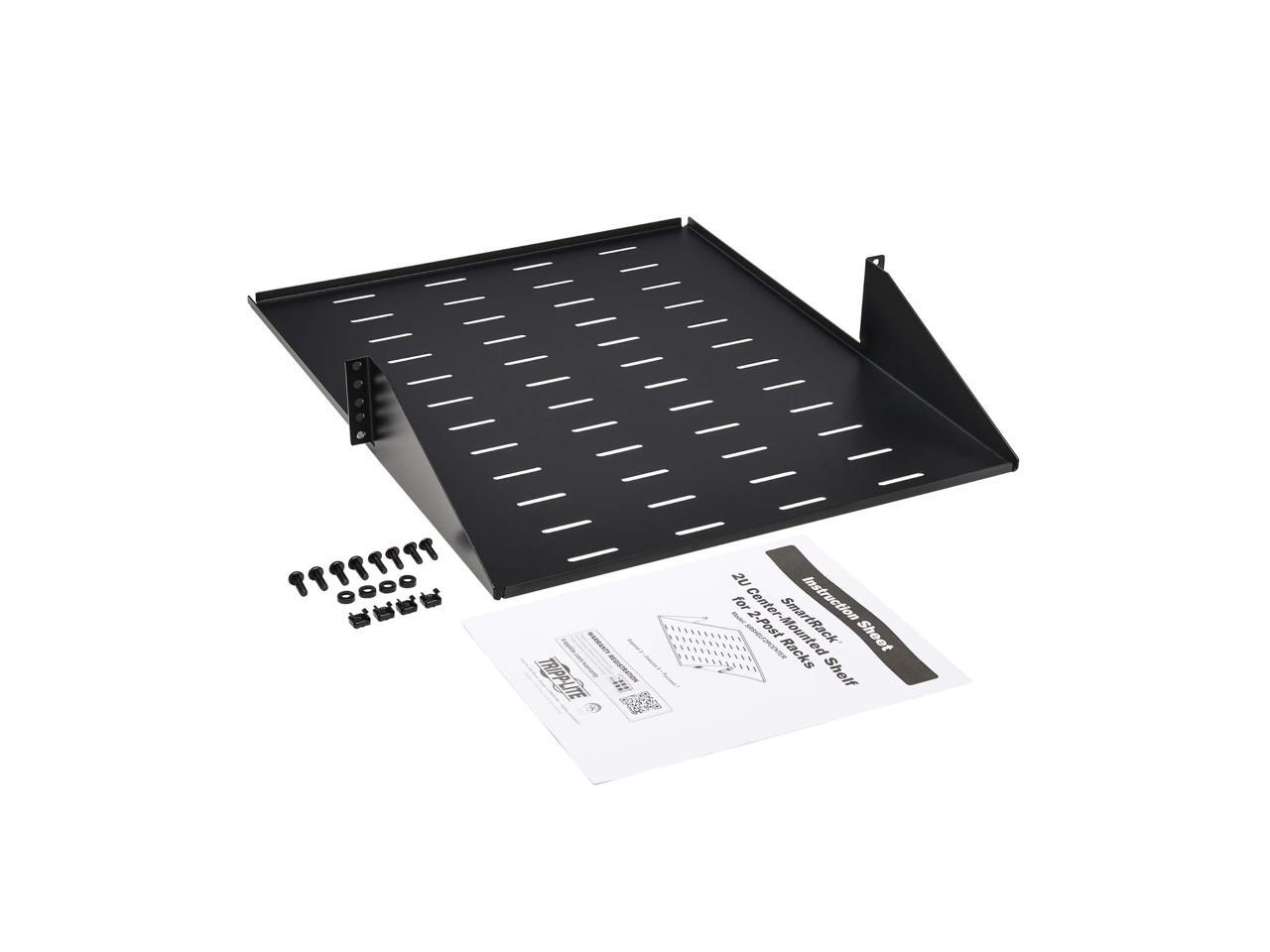 Tripp Lite 2U Center-Mounted Server Rack Enclosure Shelf, Vented Airflow Design, Mount Hardware Included, 21.5 inch Depth, 100 lbs / 45 kg Capacity, 5-Year Warranty (SRSHELF2PCENTER)