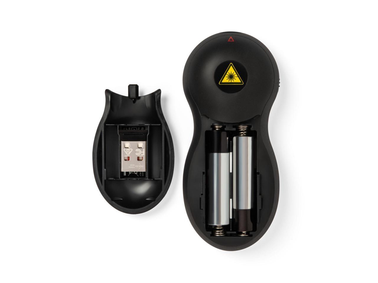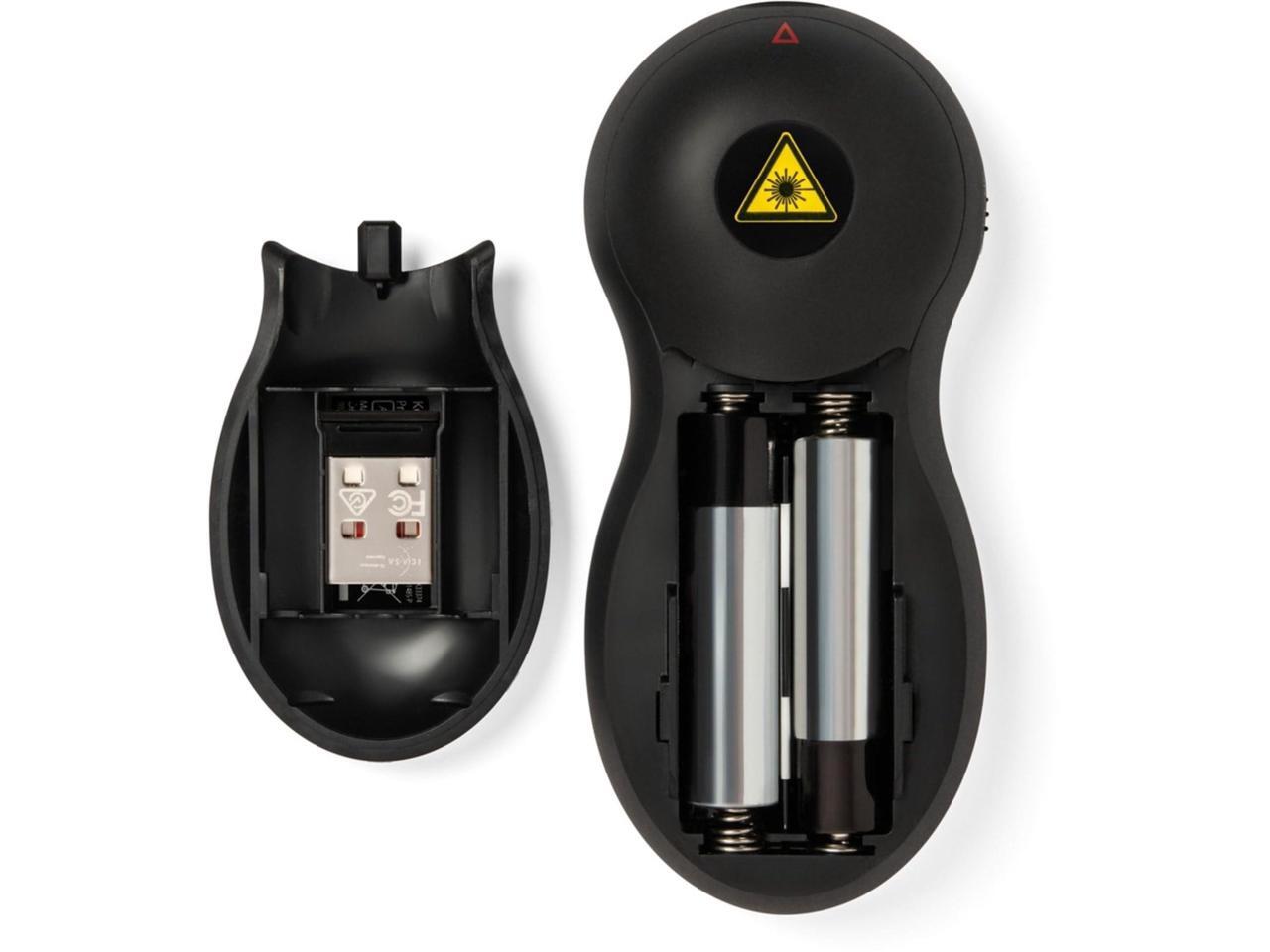 Battery compartment also provides a handy internal storage space for the wireless USB nano receiver when not in use. Each receiver and presenter are uniquely paired to prevent interference.