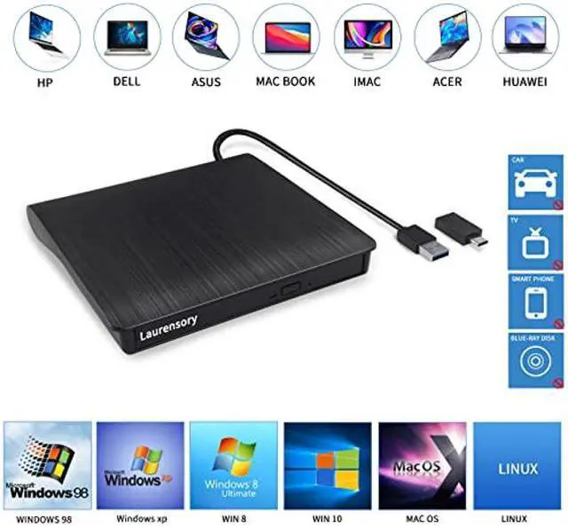 Models: Mac laptop 2015/MacBook Pro/ASUS gaming laptop/Apple MacBook Air 2020/iMac/Mac Mini and so on. How fast does this external cd drive work? This external dvd drive for laptop is USB 3.0 and up to 5Gbps data transmission speed.
