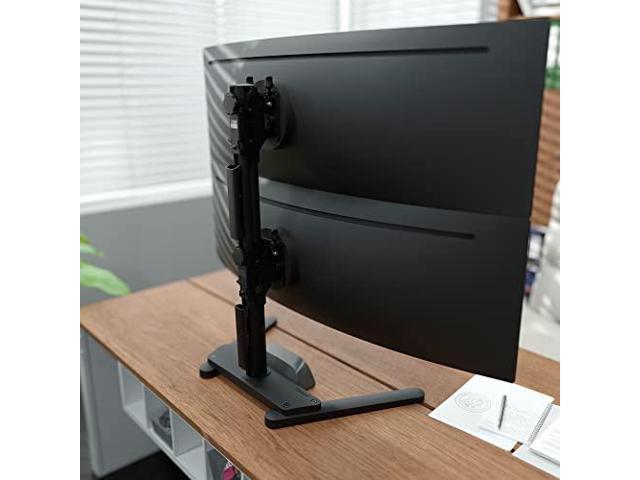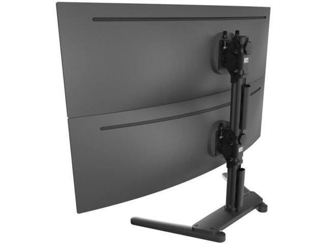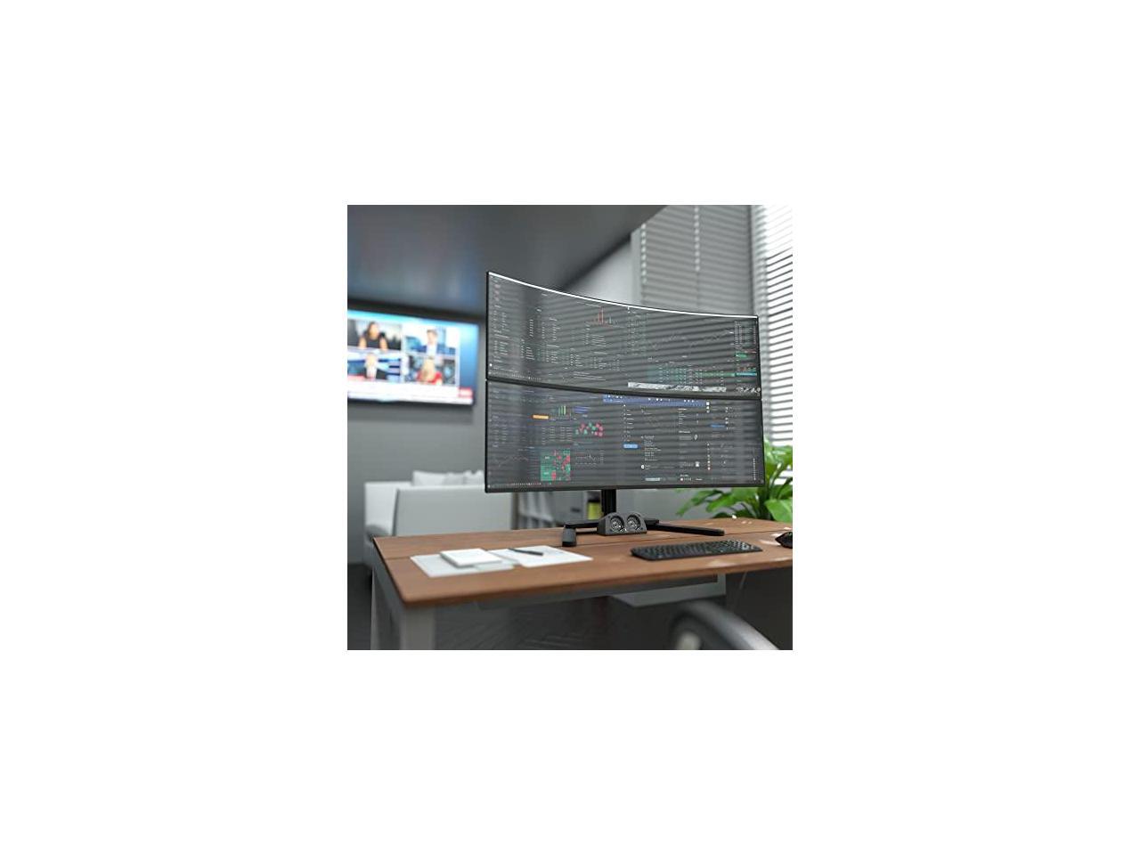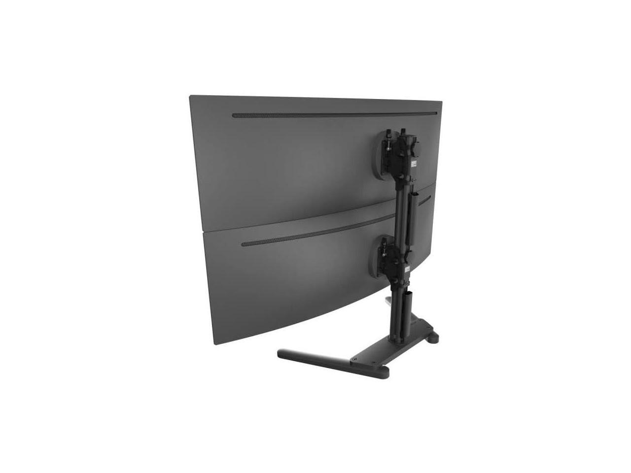 Atdec AWMS-2-BT75-FS-B Freestanding Dual Stack Heavy Monitor Desk Mount - Flat and Curved up to 49in - VESA 75x75, 100x100 - Tool-Free Adjustable Monitor Height, tilt, pan - Quick Display Release