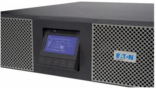 Eaton 9PX UPS Network card included 3U 6000 VA 5400 W L6-30P input w/10-foot line cord; Outputs: 2 L6-20R 2 L6-30R Hardwired 208V 9PX6K10