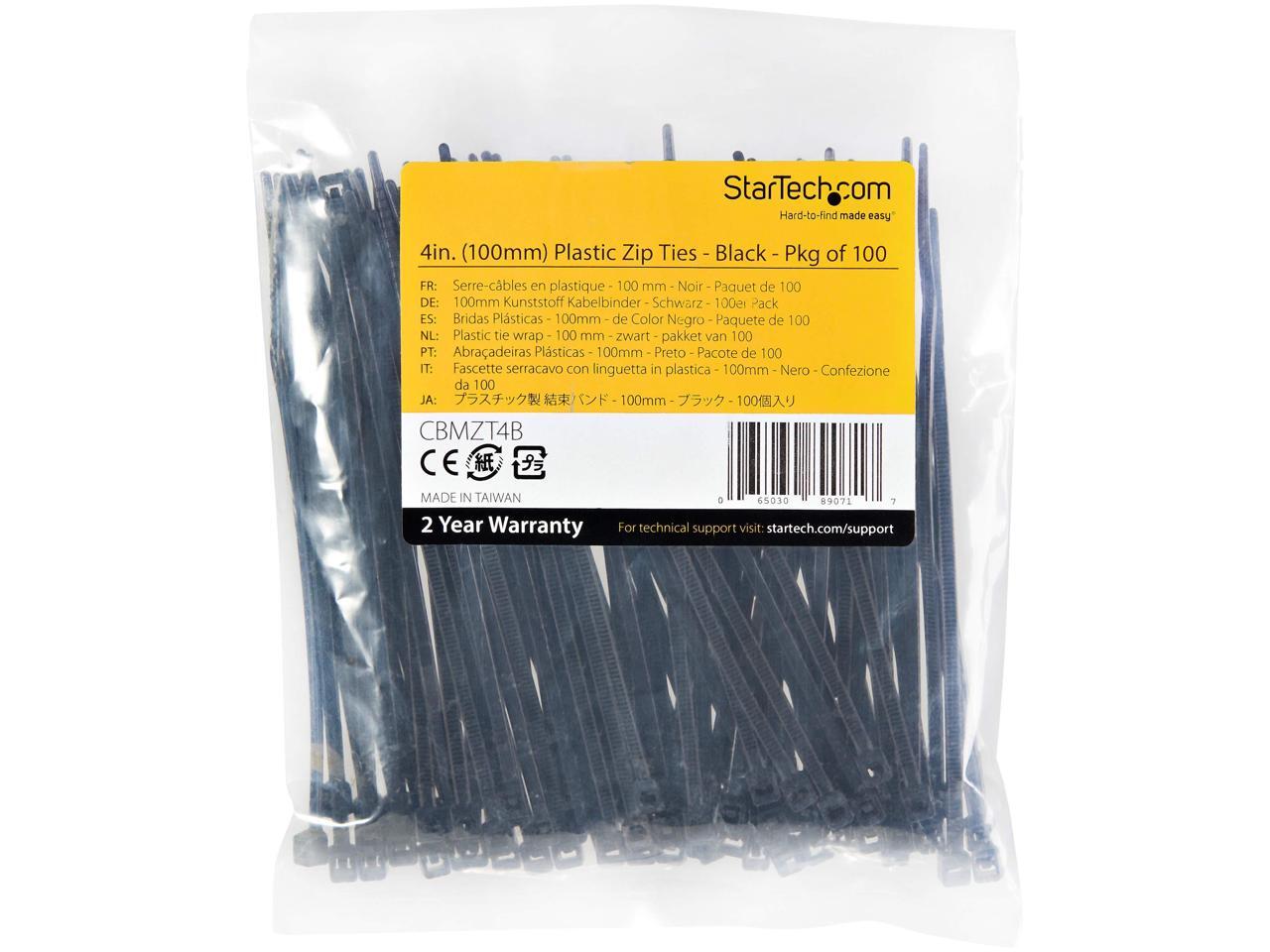 StarTech 1000 Pack 4" Cable Ties Black Small Nylon/Plastic Zip Ties Adjustable Network Cable Wraps UL TAA
