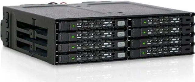 No data storage enclosure is complete without reliable drive connections- and proper drive protection. Many enterprise applications rely on their data to run their business- and any major downtime or data loss can be crippling. The ToughArmor MB998IP-B utilizes a rugged full-metal removable drive enclosure- and the latest in drive connection technology- to bring you the best in stability- speed- and reliability. For your dense data storage needs- it holds an unprecedented 8x 2. 5- SAS / SATA hot-swappable drives with 5mm-7mm height- all in a single 5. 25- bay.