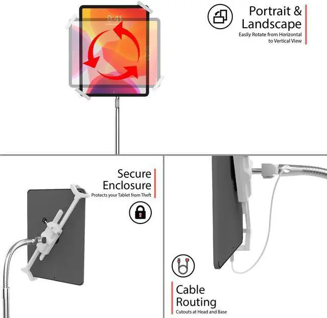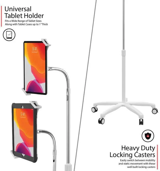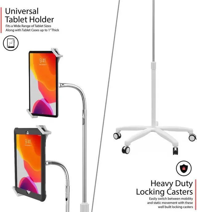 With its exceptional mobility, adjustability, and sleek white design, this Heavy-Duty Security Gooseneck Medical Mobile Floor Stand is an indispensable asset for any medical facility, doctor's office, or hospital seeking to enhance their digital capabilities.