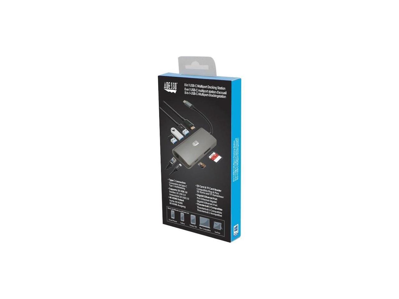 Adesso 8-in-1 USB-C Multi-Port Docking Station TAA Compliant AUH4030