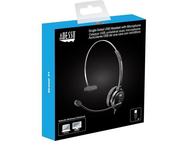 Adesso Xtream P1 USB Wired Multimedia Headset with Microphone Monaural Over the Head Black XTREAMP1