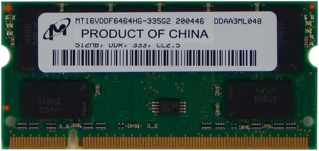 • HP 313087-005 Micron 512MB DDR333 SODIMM Memory MT16VDDF6464HG-335G2