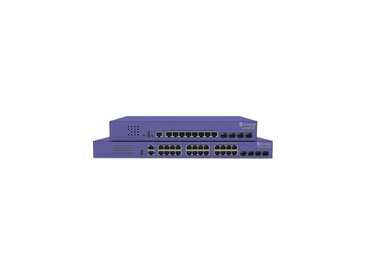8 Port 101001000BASET w Half Duplex Support PoE 2 1G BASET Uplinks ExtremeXOS Value Edge License