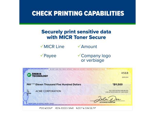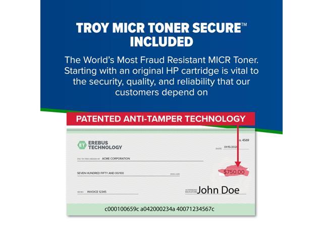 - Quality and Reliability: Enjoy peace of mind with MICR fonts specifically crafted for secure check printing. The patented MICR toner guarantees high adhesion and undergoes stringent quality tests for a robust MICR signal; the only HP OEM MICR Toner available.