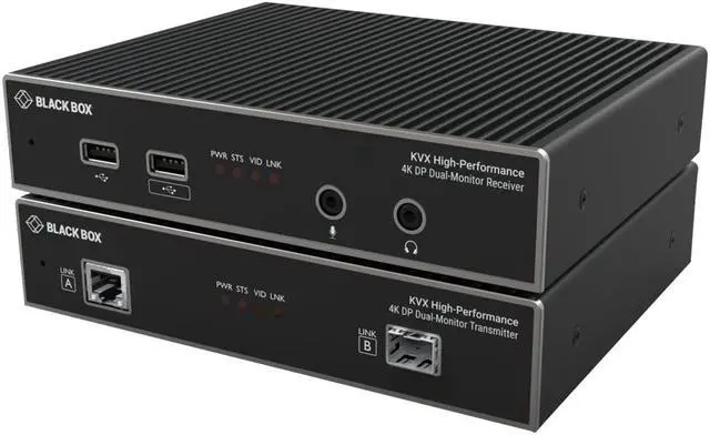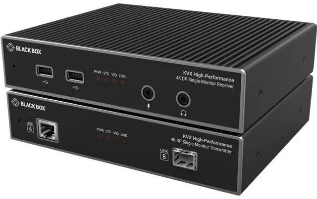 True Plug and play High-Performance point-to-point KVM extension. Using DisplayPort 1.2 KVXHP-100 supports single monitor setups with up to 4096x2160 at 60Hz using 8 bits per color 4:4:4 chroma sampling and USB 2.0 (HID) - all transmitted over a single cable. Whether your requirements are CATx or fiber KVXHP is equipped to handle both interfaces providing a single solution for all use cases.