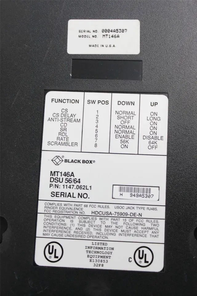Package Includes: 1 Black Box 56/64 DSU MT146A Data Service Unit