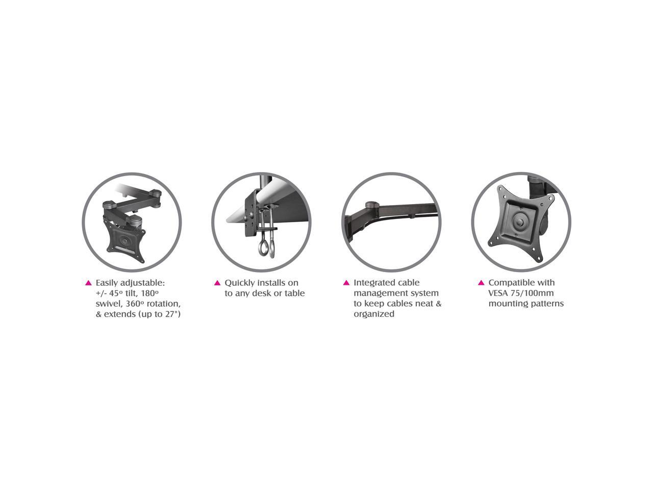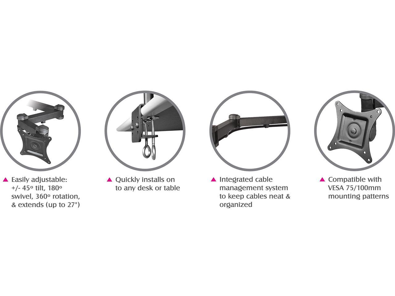Dual Articulating Mounting Arms Extend Up to 27 Inch