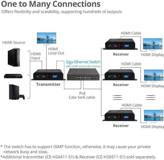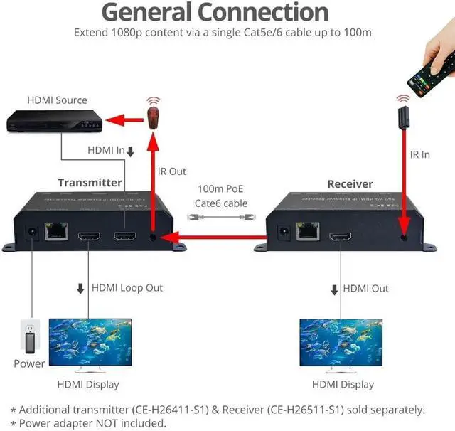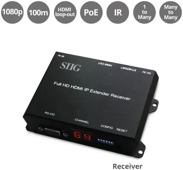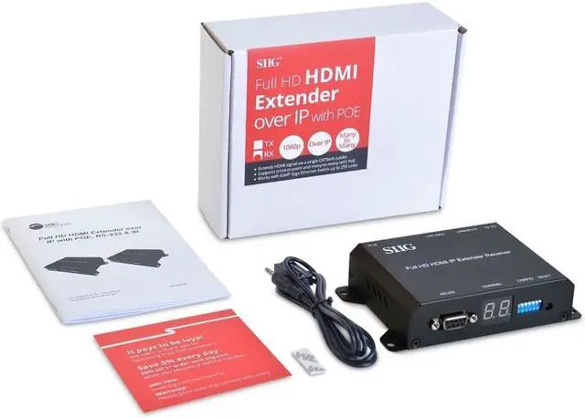 Contents: Full HD HDMI Extender over IP with PoE, RS-232 & IR - Receiver 1 x IR Receiver cable Quick Start