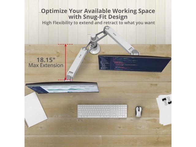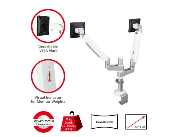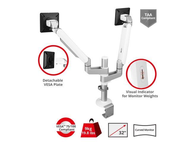â?? Fits 32" Displays - This dual monitor desk mount fits most flat monitors up to 32 inches in size and weights up to 19.8 lbs (9kgs) for each arm. Compatible with VESA 75x75mm and 100x100mm mounting standards