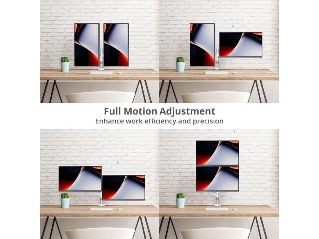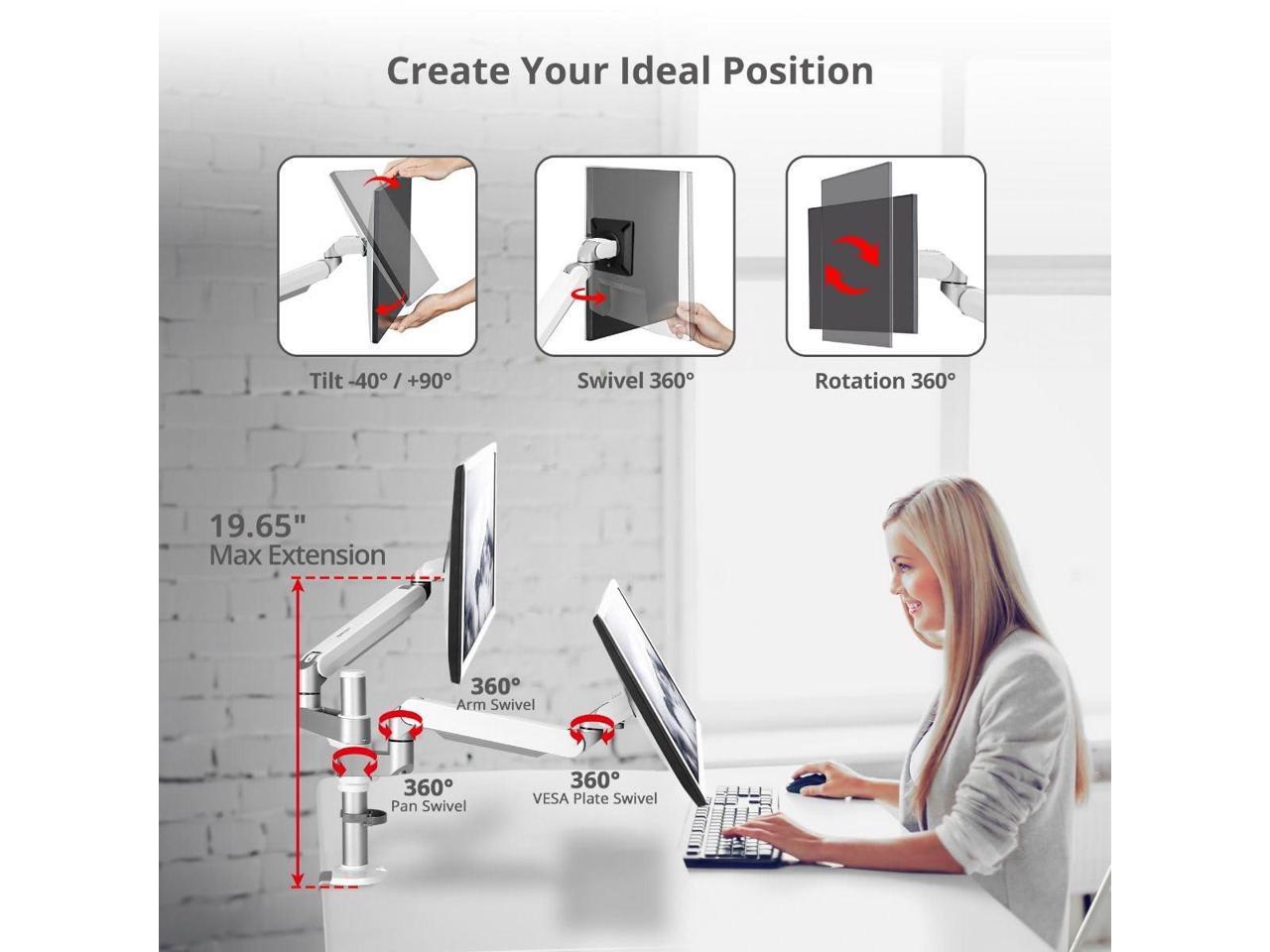 â?? Full 360 Motion Adjustable - Achieve great viewing angles with +90° upward tilt -40° downward tilt 360° VESA Plate swivel and 360° Screen rotation for landscape or portrait modes 360° pan swivel and 360° arm rotation.