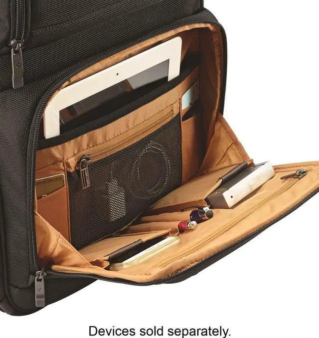 Carry business essentials safely with this 17.5-inch Samsonite Kombi backpack. It has a padded compartment to protect a laptop during transport, and its ballistic nylon exterior resists snags and tears. Stash small items in the zippered pockets of this Samsonite Kombi backpack, which has a fob for quick access to keys.