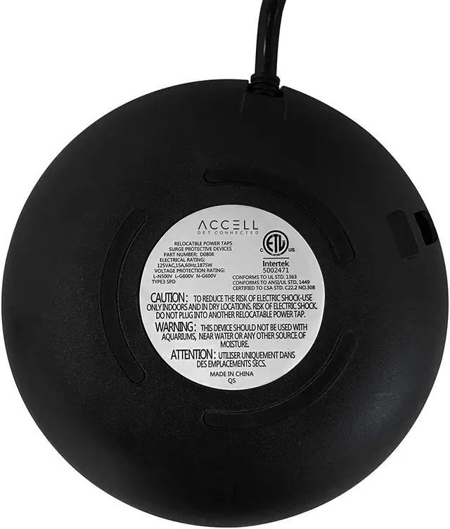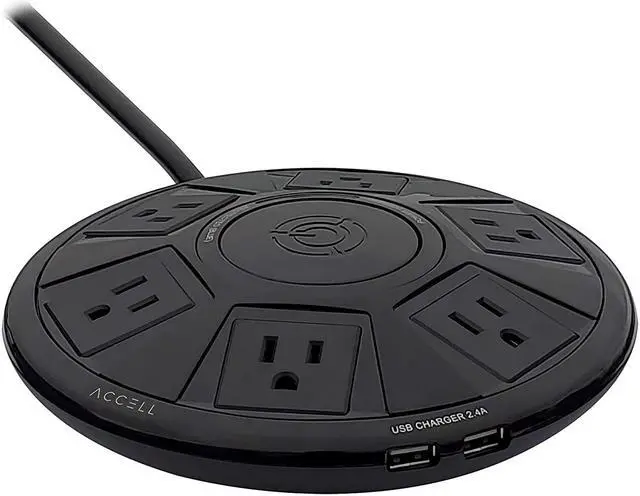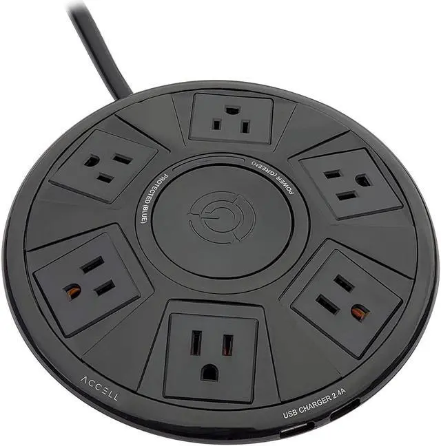 Accell SUR D080B048B Power Air 1080J Surge Protector w 2xUSBA 6ft black RTL