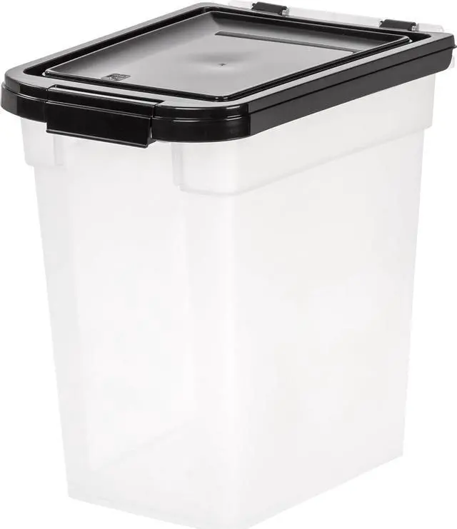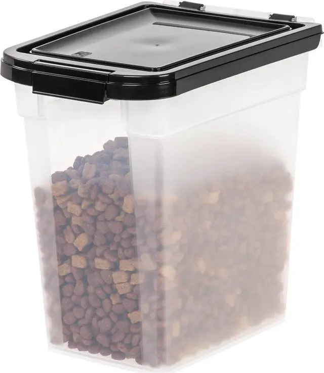 Airtight storage holds up to 10 LBS of pet food. Airtight seals keep out moisture, humidity & pests. Nestable design - lids stay attached. "Positive-snap" latches. Tapered shape from top to bottom. Translucent bodies - food can be checked at a glance. Wide top access for easy scooping. Easy to clean. FDA-compliant & BPA-free material. Made in USA.