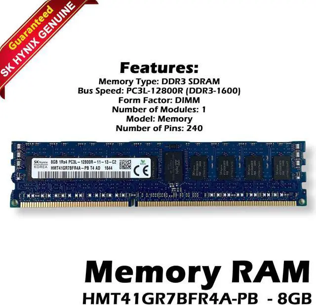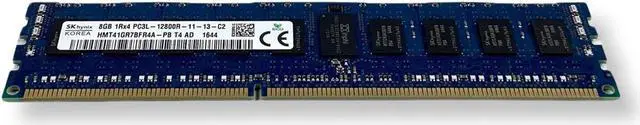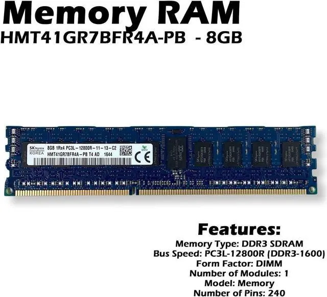 SK Hynix HMT41GR7BFR4A-PB is an 8GB DDR3 Registered DIMM (RDIMM) memory module designed for use in servers and workstations requiring reliable and high-performance memory solutions. Operating at a speed of DDR3-1600 (PC3L-12800R), this module provides fast and efficient data transfer rates suitable for demanding server applications. It features a single rank x4 configuration, offering a balance of capacity and performance. The RDIMM design includes error-correcting code (ECC) functionality, which helps detect and correct memory errors, ensuring data integrity and system stability in critical computing environments.