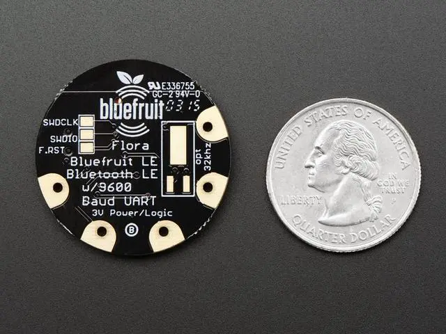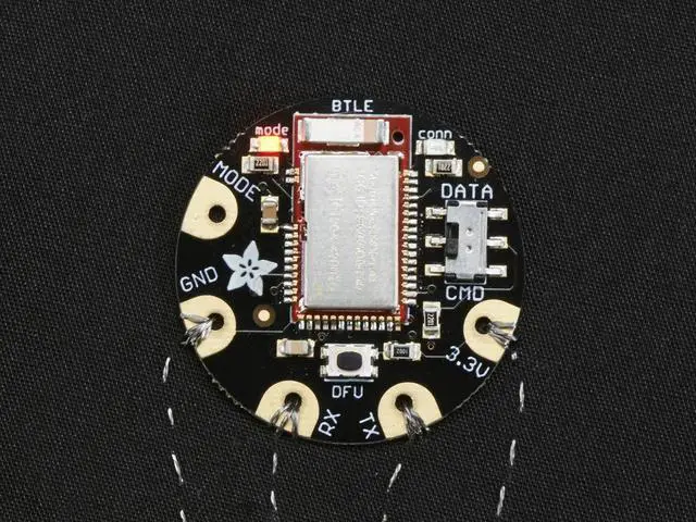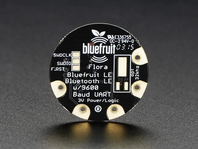 The Flora Bluefruit LE makes it easy to add Bluetooth Low Energy connectivity to your Flora. Sew 4 traces (or solder 4 wires) and BooM! Bluetooth Low Energy!