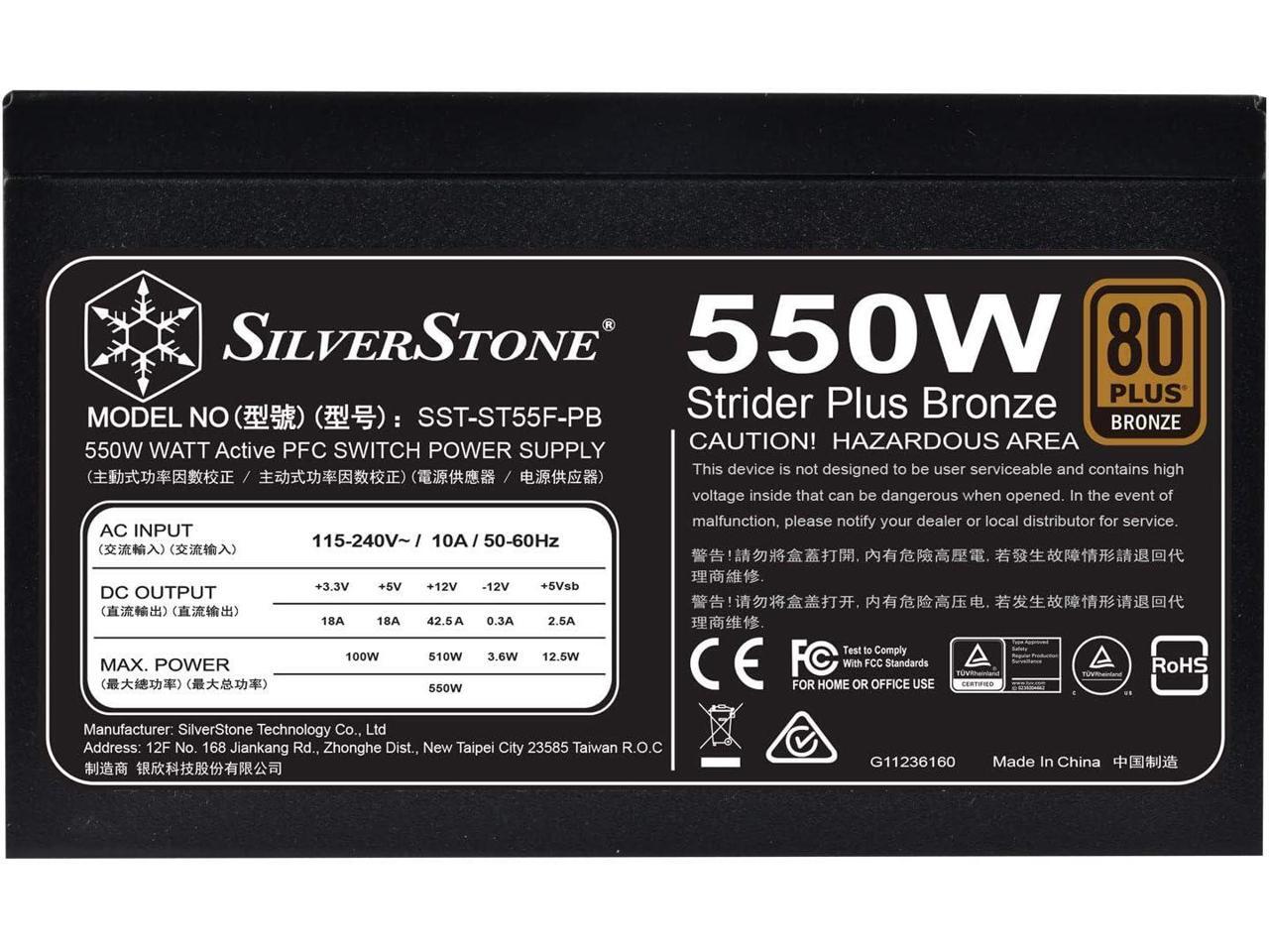 550W, ATX, single +12V rails with 42.5A output, Silent 120mmFan with 18dBA, efficiency 80Plus Bronze certification, fully modular cable, 140mm depth, 2x8/6pin PCI-E.