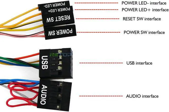 Design for: USB, Power LED+, Power LED-, Reset SW, Power SW, AUDIO.